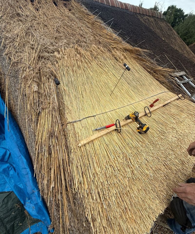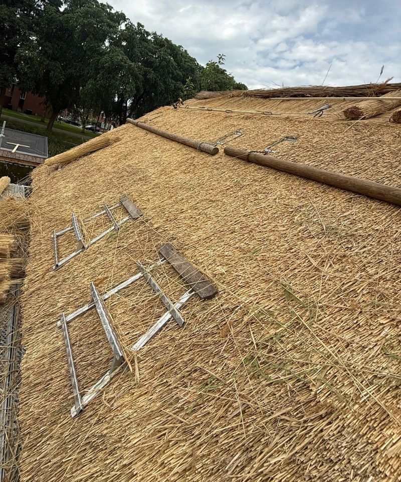 Reparaties worden uitgevoerd door een ervaren rietdekker met kennis van alle soorten rieten daken.